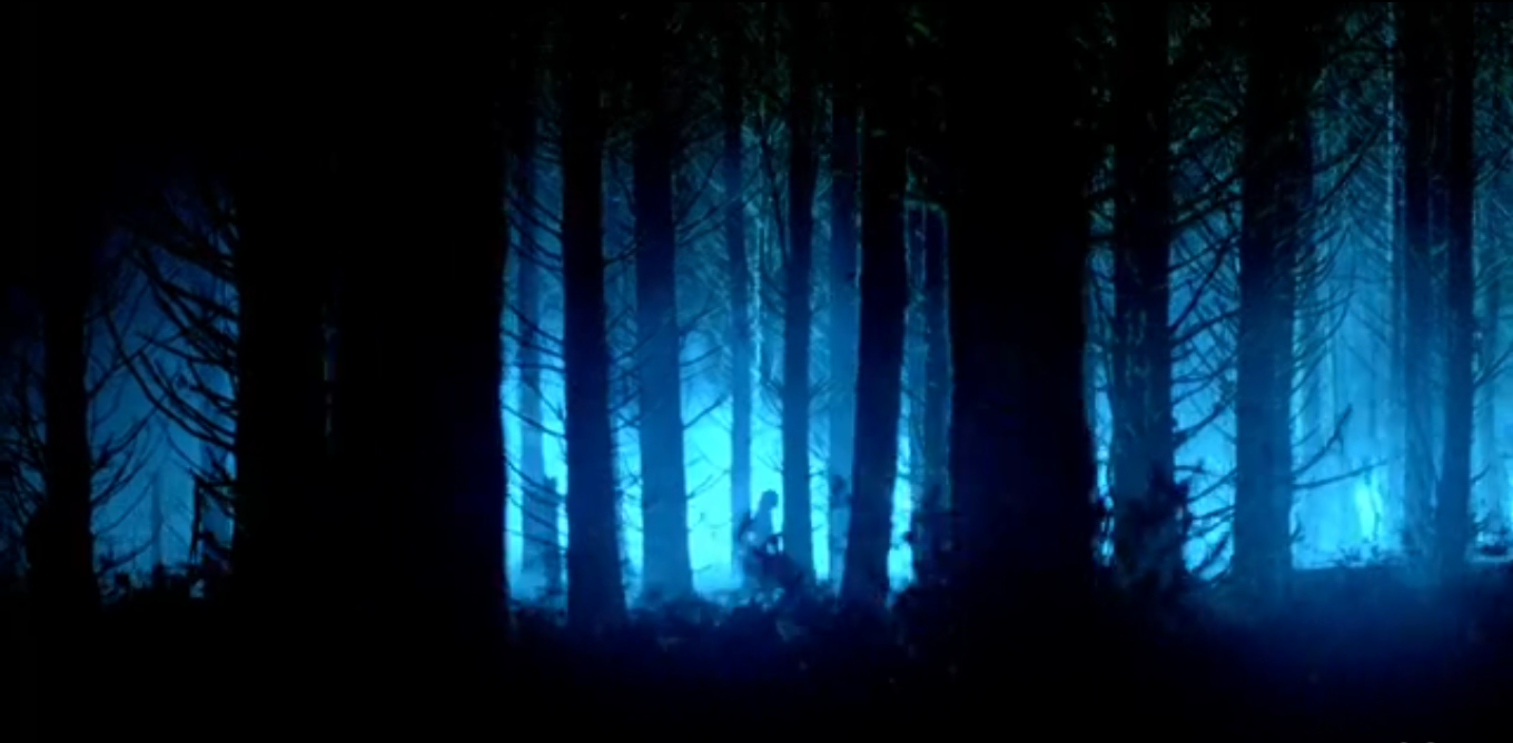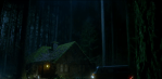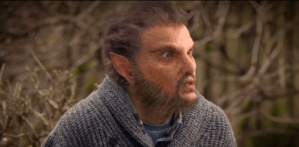 The mailman, now in a sweater and slacks, is sitting on his bed, examining his blood-spattered boots, and gets up. Nick and Monroe stop on the bridge. Monroe says this is as far as they drive, and shuts off the engine and lights. They get out of the car and stand next to it. The lights are back on again (must be magic). Monroe begins to rub something all over him and hands some to Nick, explaining that it’s wolfsbane, and will mask their scent. Nick rubs some on and starts to head down the road. Monroe stops him. “What, do you want to call him and tell him you’re coming? This way.” They head down to the water below, splashing down the stream for a bit. A full moon is revealed, causing Monroe to fight against changing for a minute. Nick asks if he should’ve armed himself with silver bullets. Monroe stares at him, saying “What are you, an idiot?” They come within sight of the cabin, and it gets very hard for Monroe to keep control. He said if he goes in, he doesn’t know what might happen – he might be on Nick’s side, he might be on the blutbad’s side, he might even go after the little girl. He runs away.