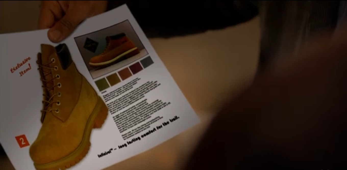 The next day at the station, Nick and Hank catch us up by having a conversation about the case. DNA evidence is inconclusive, and they have a match to the boot print: the ad says it’s some sort of exclusive boot, but it looks like an ordinary yellowish-tan leather workboot with thick soles.