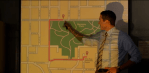 The mailtruck drives away. Nick and Hank are out retracing the little girl’s route. Hank points out that it’s much quicker to go through the woods to get to her grandfather’s instead of taking the way around. Nick says the mother was very specific on the route her daughter takes. Hank says “Kids always do what their moms tell them to do – I know I did” as he walks into the woods. Nick takes Hollyberry Trail while Hank heads to Mill Pond.