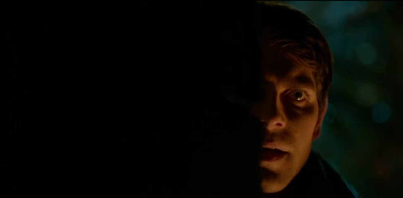 Monroe is standing in front of his window, eating while he appears to be doing something very intricate with his hands. Nick is lurking at the edge of the woods, watching him. Juliette calls him, but he doesn’t pick up because Monroe chooses that moment to go outside to the backyard. Nick quickly and quietly runs around the other side of the house, peeking around the corner.