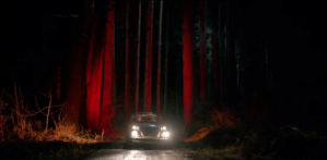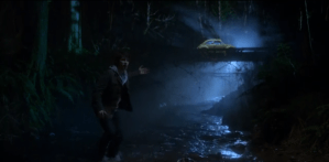Nick and Monroe are in his old yellow Beetle. Nick says that he really thinks he should be driving. Monroe is driving with his head stuck out the window, sniffing. From the dialogue, it sounds like Nick took him to the college girl’s crime scene to get the scent he is now tracking. Monroe explains that since the blutbad has just fed, he’ll be fine for a week, so he’s probably just going to fatten the little girl up. He gets a definite hit on the scent.