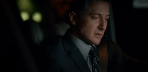 Cops are all over the house, clearly at the end of an exhaustive search, as Sgt Wu looks under a throw pillow on the couch and complains. Nick insists if she’s not at the house, he’s stashed her someplace else. Hank takes him out onto the front porch, asking what Nick sees in the guy that they clearly don’t – he’s got a clean record. Looking at Monroe (I don’t think he’s named in this ep, but constantly reading about “the man” will be tedious) sitting in the back of the cop car, Nick tells Hank that he fits the profile: he’s a loner, never been married, and he lives across the street from a park! (Unfortunately, I fit that profile as well…) Hank tells Nick the only way they’ll get him in court is if he sues their asses, and stalks off. Nick and the man stare at each other through the car window.